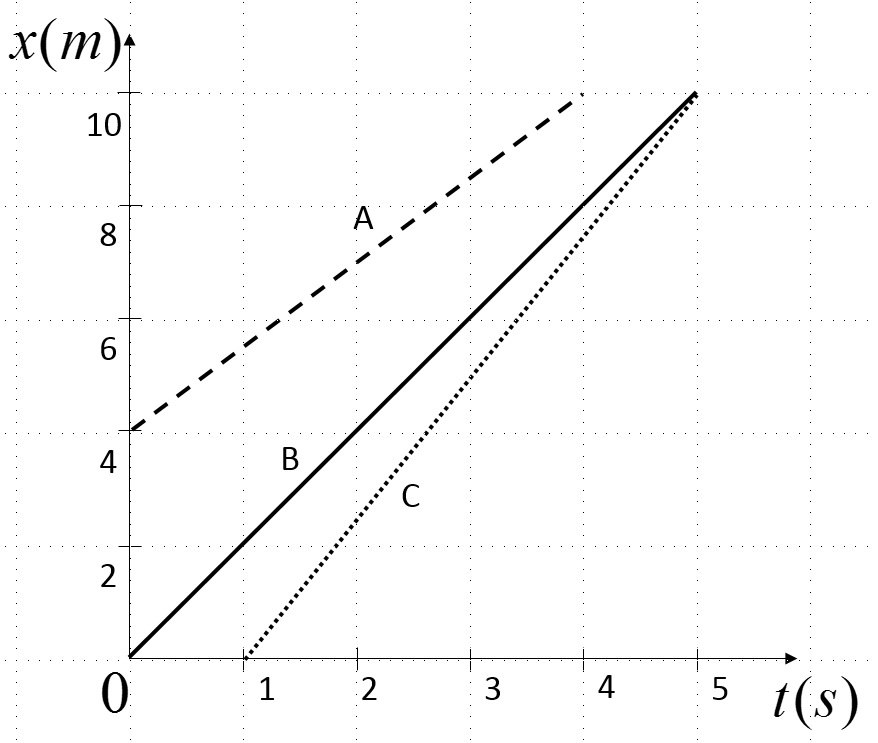 3. Bestudeer de afbeelding. Er staan vier x(t) verbanden getekend die de verplaatsing van 4 personen aangeven. Welke van de vier personen heeft de grootste gemiddelde snelheid?